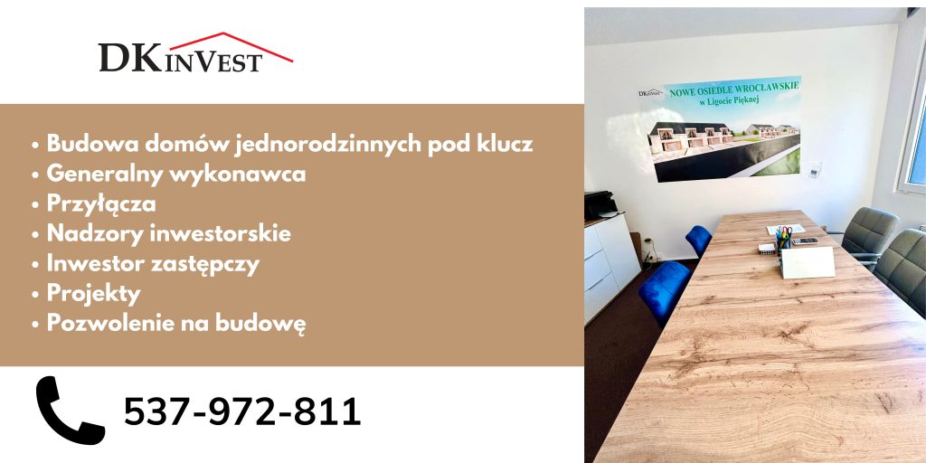 DKinVest s.c. to firma deweloperska z wieloletnim doświadczeniem w realizacji inwestycji mieszkaniowych i usługowych w okolicach Wrocławia oraz – we wcześniejszych latach – w różnych regionach Polski.
