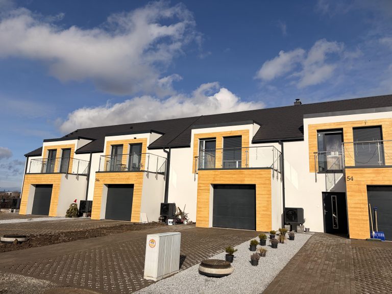 To kameralne osiedle 4 nowoczesnych domów o powierzchni 122 m² z ogrodami, stworzone z myślą o osobach ceniących przestrzeń, ciszę oraz szybki dojazd do Wrocławia.